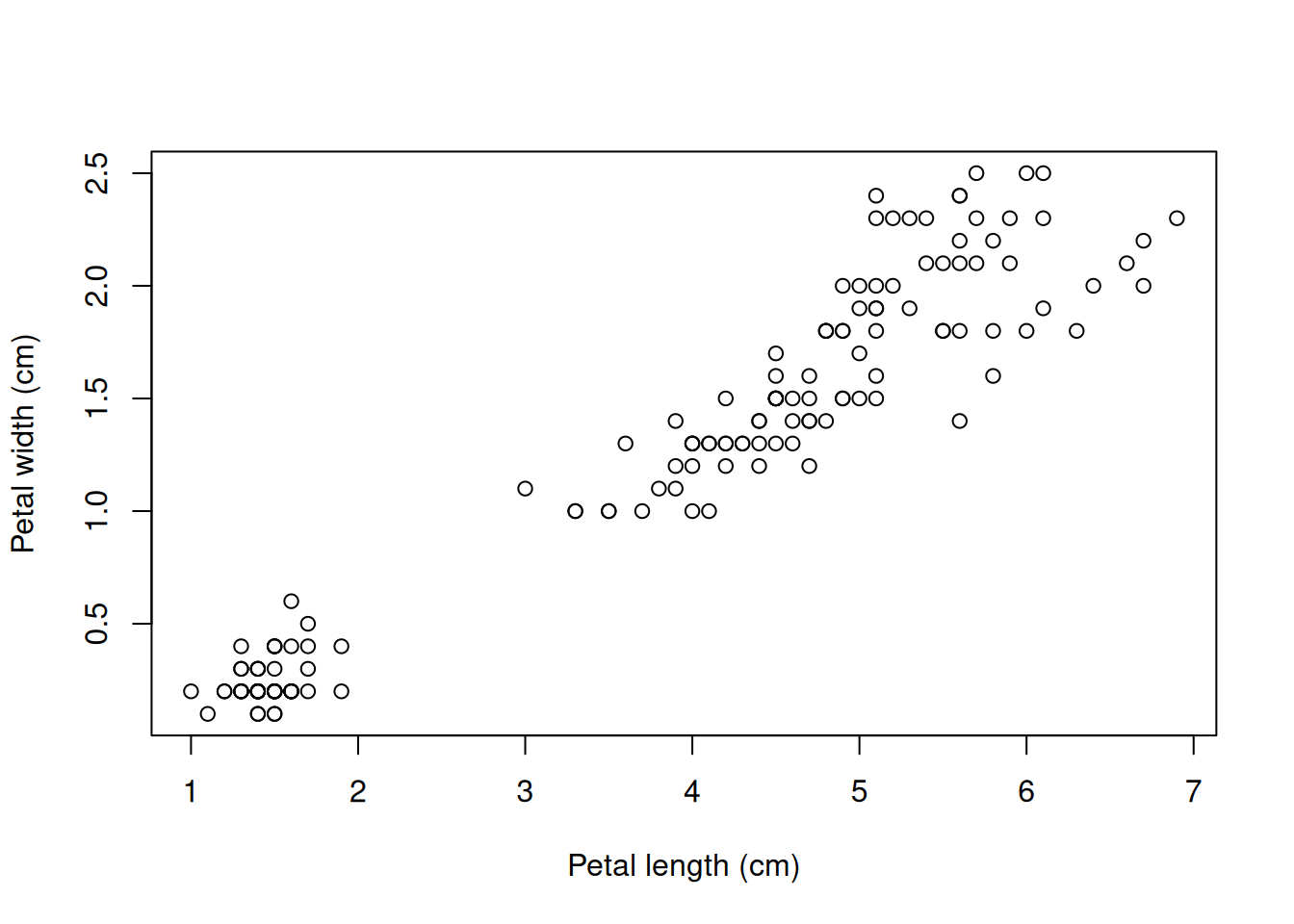 Petal width and petal length were highly correlated (r2 = 0.93).